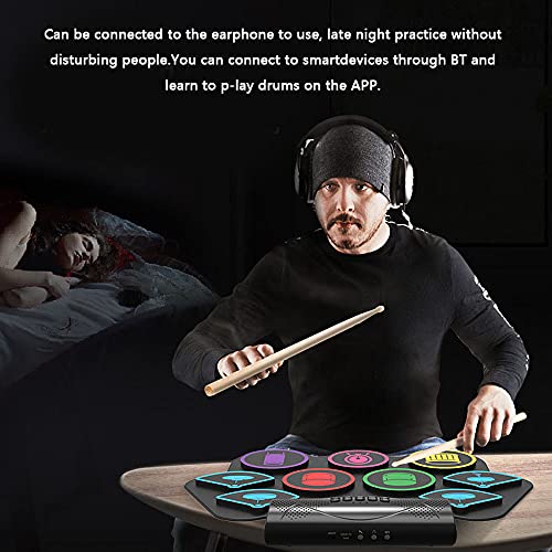 Specification: Draagbare roll-up-siliconen trommelset, compacte USB-roll-up-siliconen trommelset, draagbare BT Electronic Drum Kit 9…