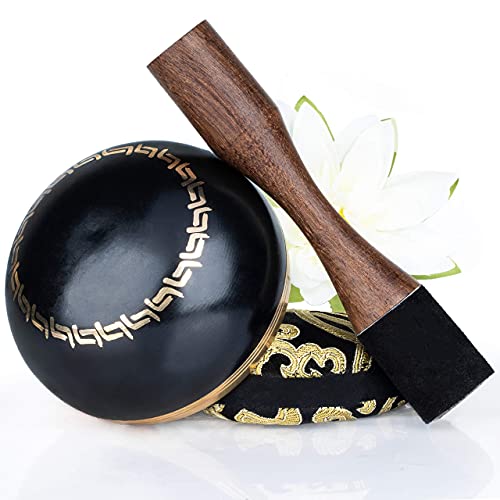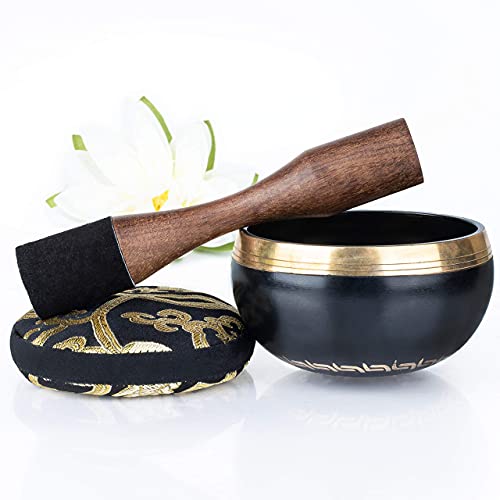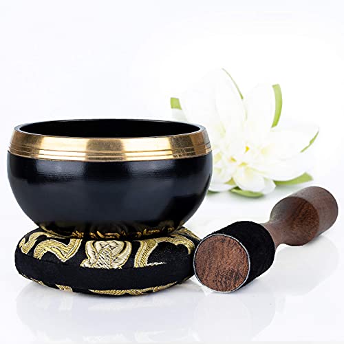 Specification: Silent Mind ~ Tibetaanse klankschaal set ~ Met dubbelzijdige hamer en zijden kussentje ~ bevordert harmonie, chakra healing, en mindfulness – Zwart glanzend