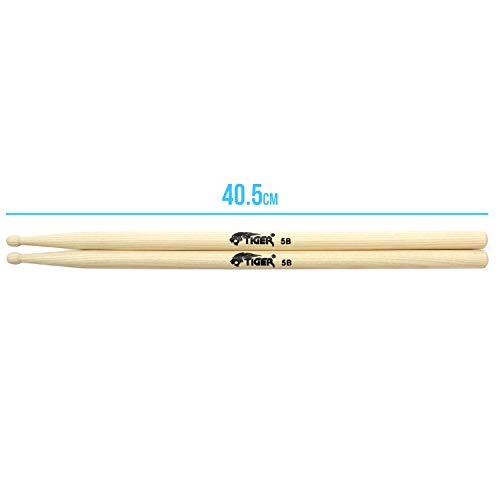 Je ontvangt ook een paar Tiger 5B Hickory Drumsticks. Lichtgewicht en duurzaam, deze drumsticks hebben een standaard taper lengte