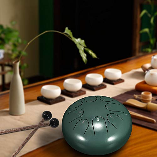 Vvciic Stalen Tong Drum, 8 Nota’s 6 Inches Percussie Instrument Hand-pan Drum met Drum Mallets Draagtas, Groen